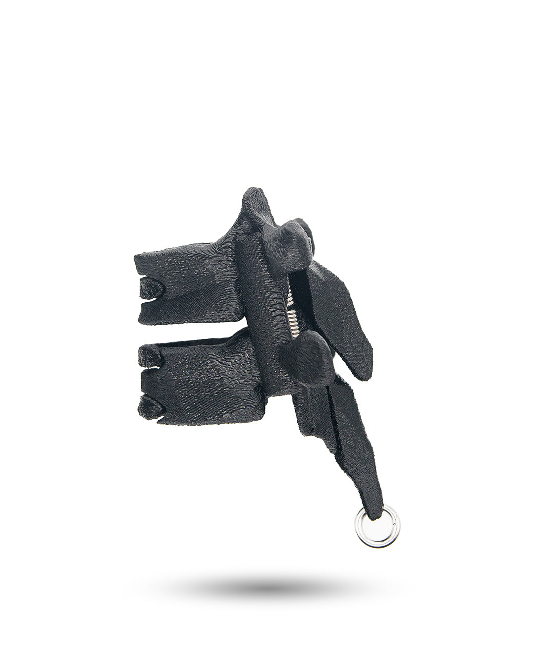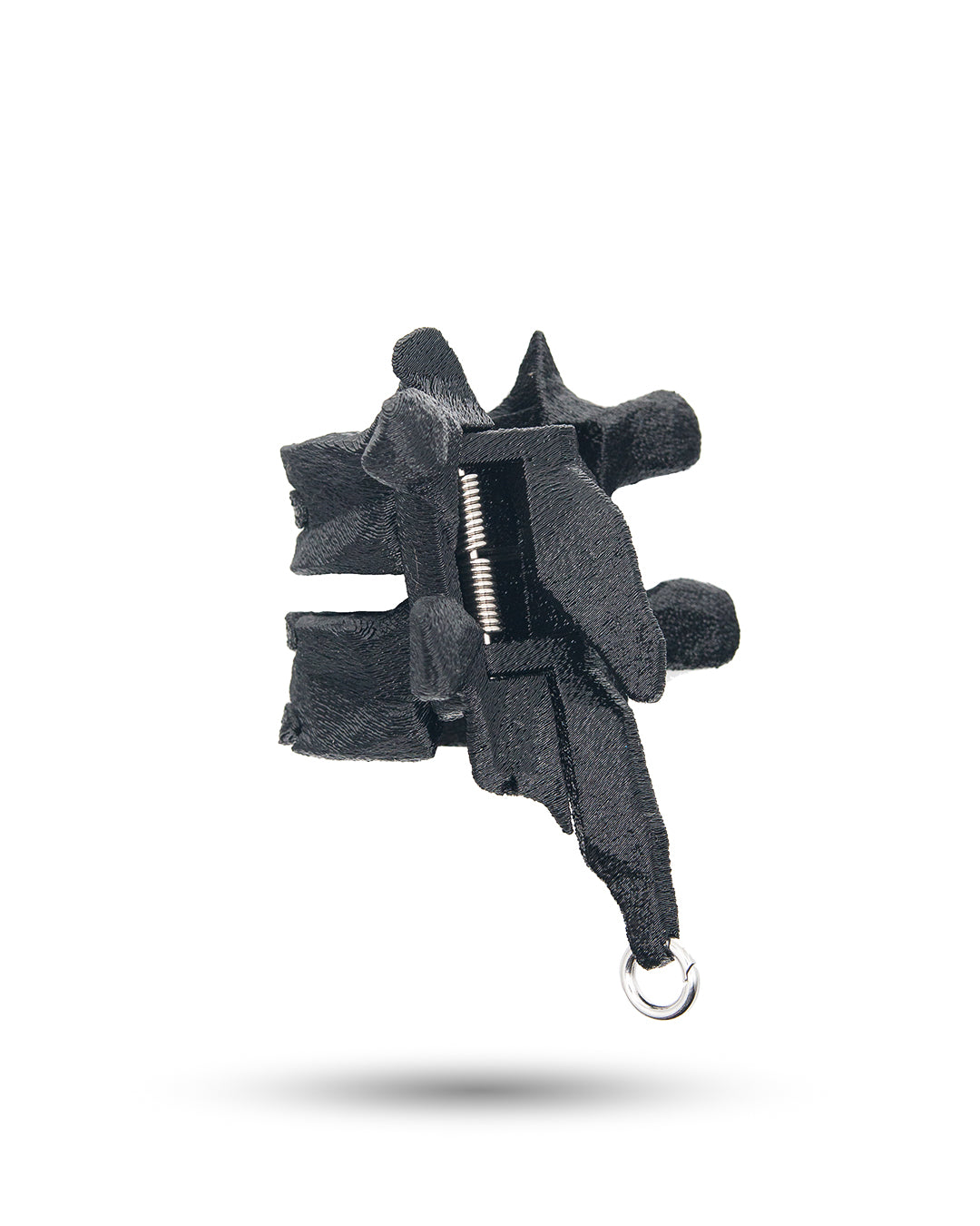 It's essentially the Spinal Hair Clip but smaller. Still made with tough phone case material (TPU 95A) and stainless steel rods. The last vertebrae also has a stainless steel ring clasp allowing you to attach a keychain or remove the clasp.