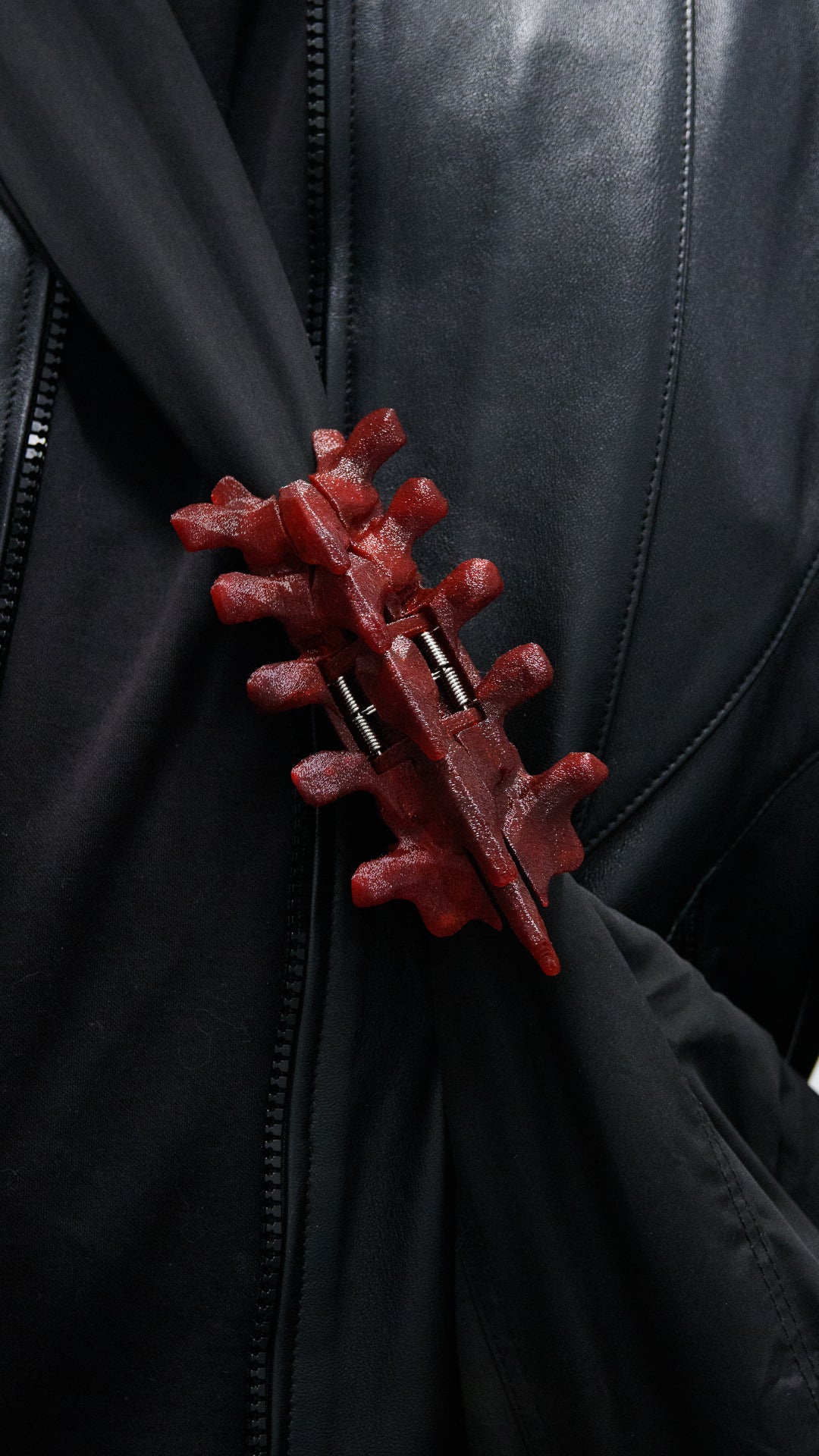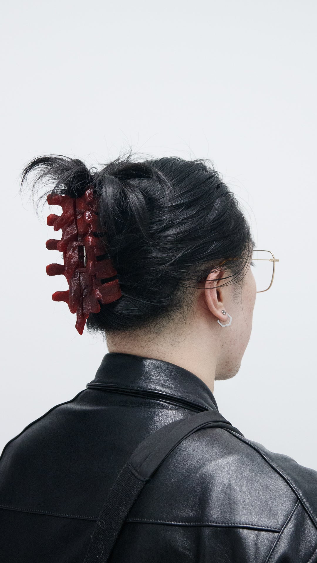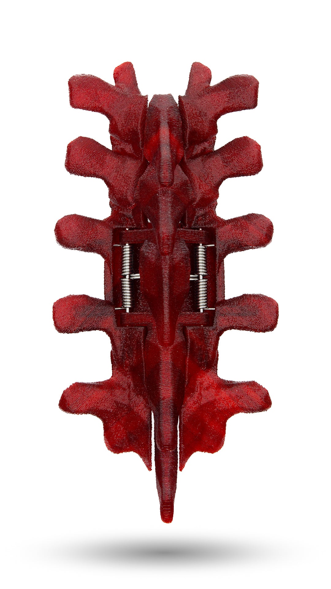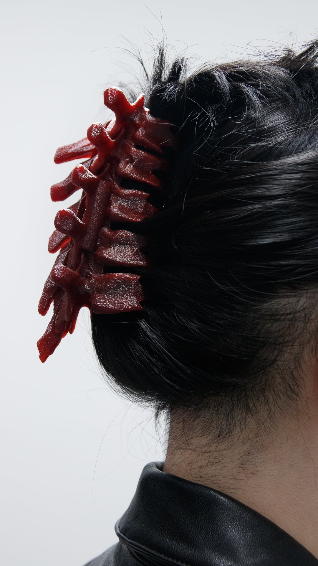 I designed the unique dual-axis mechanism with quad springs, which allows the side wings to move freely and exert even pressure on your hair without interfering the spinous processes in the back. This allows the hairclip to be used like any standard hair clip using the finger groove on the 4th vertebrae. Nearly everything is made in my studio, from the printing of the TPU to the hand-wound springs to the embossing of the packaging.